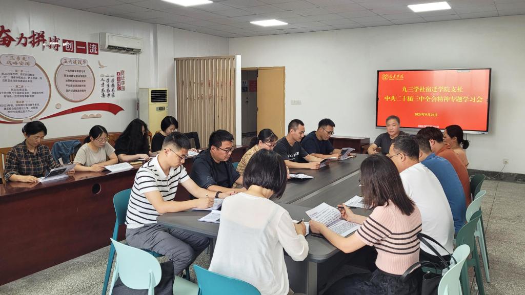 9月29日下午,九三学社宿迁学院支社在统战之家召开“党的二十届三中全会精神”专题学习交流会。