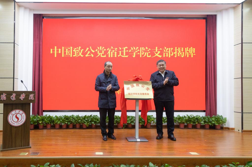 会议宣布致公党宿迁学院支部选举结果,并为“致公党宿迁学院支部”揭牌。