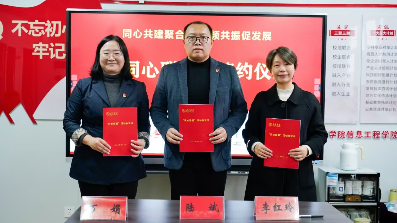 为进一步深化校企合作、不断提升合作共事能力和水平,近日,民盟宿迁市高教总支携手宿迁学院信息工程学院、长电科技(宿迁)有限公司共同举办题为“同心共建聚合力,同频共振促发展”共建活动,标志着“党建联盟”与“同心联盟”共建方案的正式启动。信息工程学院院长张岩、信息工程学院党委书记万娟、民盟宿迁市高教总支主委李红玲、长电科技(宿迁)有限公司党总支副书记陆斌出席活动。