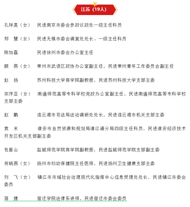 参政议政是参政党担负使命、体现作用的基础。为树立典型、表彰先进,近日,民进中央决定,授予民进北京市海淀区委会等102个集体“民进全国参政议政工作先进集体”称号,授予马颖等439名同志“民进全国参政议政工作先进个人”称号。我校经济管理学院讲师、民进宿迁市委委员蒋捷同志荣获“民进全国参政议政工作先进个人”。